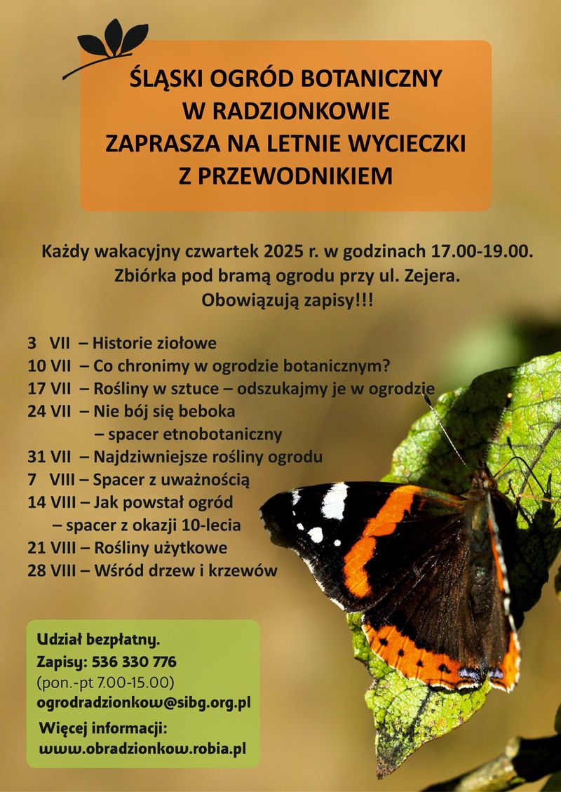 Śląski Ogród Botaniczny w Radzionkowie przez całe wakacje zaprasza serdecznie na wycieczki po ogrodzie botanicznym.