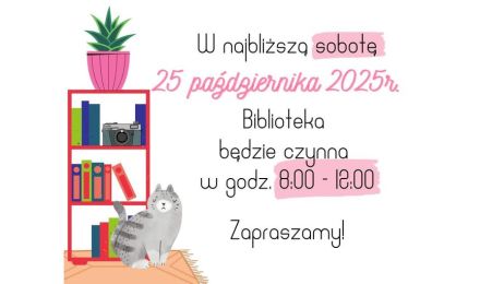 Miłośników książek zapraszamy w sobotę do Miejskiej Biblioteki Publicznej w godzinach od 8:00 do 12:00.