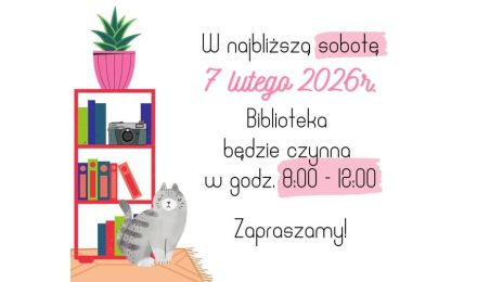 Miłośników książek zapraszamy w sobotę do Miejskiej Biblioteki Publicznej w godzinach od 8:00 do 12:00.