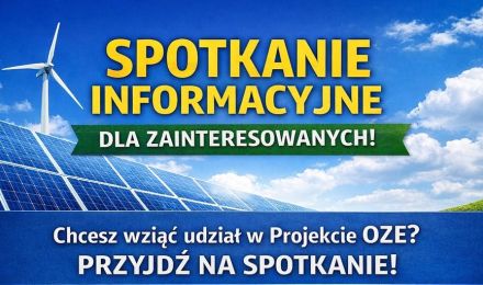 W związku z naborem wniosków do projektu OZE zapraszamy wszystkich zainteresowanych na spotkanie informacyjne: