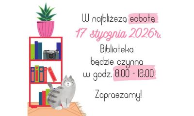 Miłośników książek zapraszamy w sobotę do Miejskiej Biblioteki Publicznej w godzinach od 8:00 do 12:00.