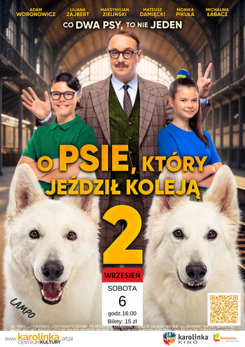Zapraszamy na sobotnie projekcje filmowe. O godz. 16:00 "O psie, który jeździł koleją 2", natomiast o godz. 18:30 "Pan Olbrychski". Bilety do nabycia w kasie Centrum Kultury "Karolinka".