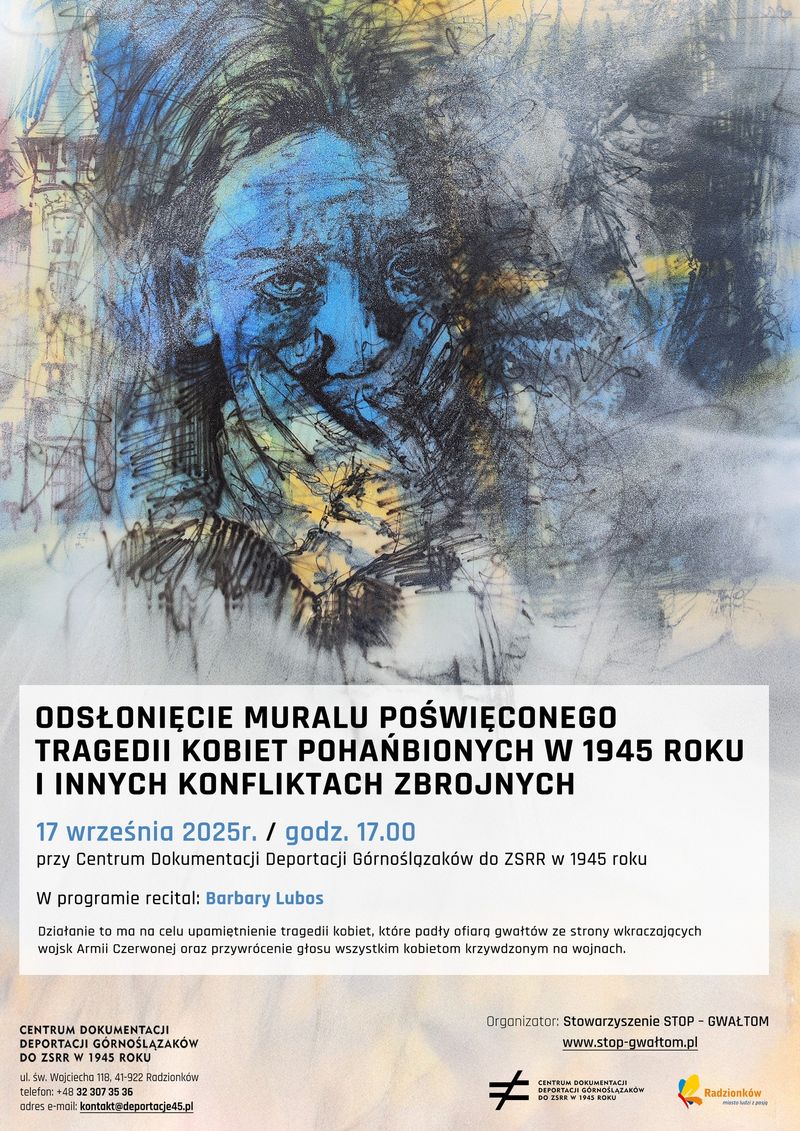 Centrum Dokumentacji Deportacji Górnoślązaków do ZSRR w 1945 roku zaprasza na odsłonięcie muralu poświęconego tragedii kobiet pohańbionych w 1945 roku i innych konfliktach zbrojnych.