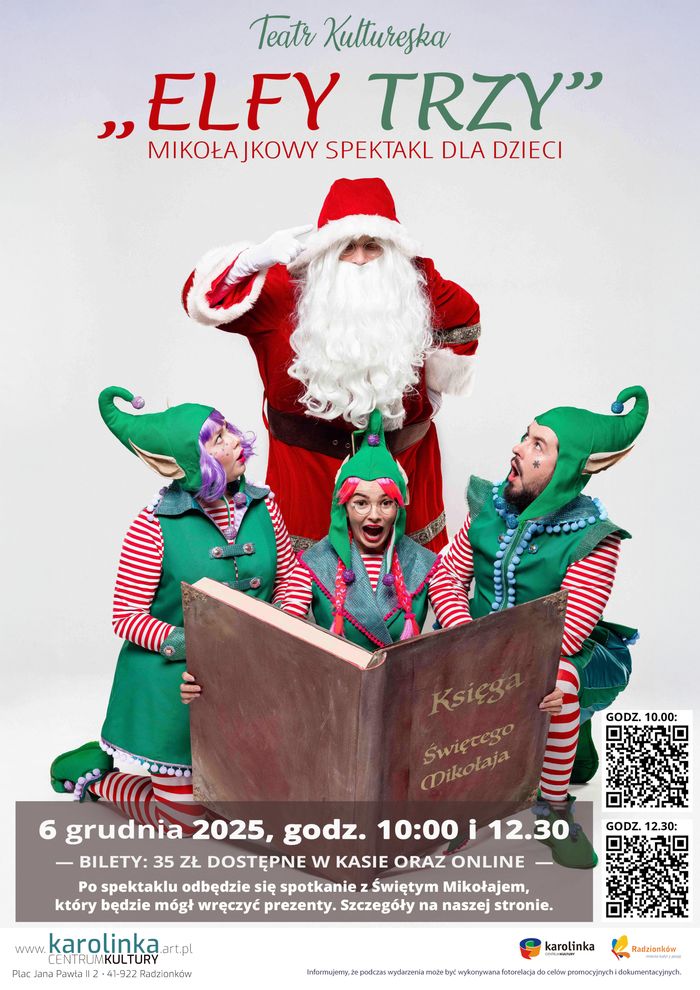 Centrum Kultury Karolinka zaprasza na wyjątkowy musical "Elfy Trzy" o świątecznej tematyce.