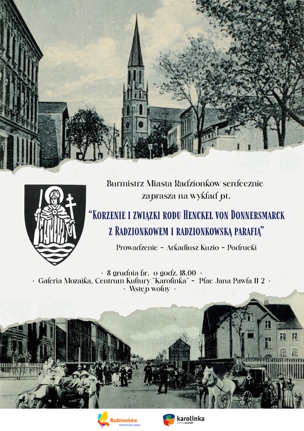 Z okazji obchodzonej w tym roku rocznicy 150-lecia kościoła pw. św. Wojciecha oraz zbliżającej się rocznicy 700-lecia pierwszej historycznej wzmianki o mieście, prelegent opowie o relacjach łączących Donnersmarcków z Radzionkowem i miejscową parafią.