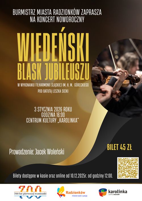 Burmistrz Miasta Radzionków zaprasza na Koncert Noworoczny, który zainauguruje rok szczególny dla naszego miasta – rok jubileuszu 700-lecia pierwszej historycznej wzmianki o Radzionkowie.
