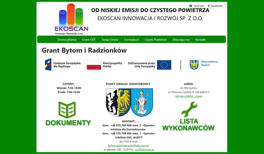 Strona internetowa: https://niskaemisja.ekoscan.pl/grant-bytom-radzionkow